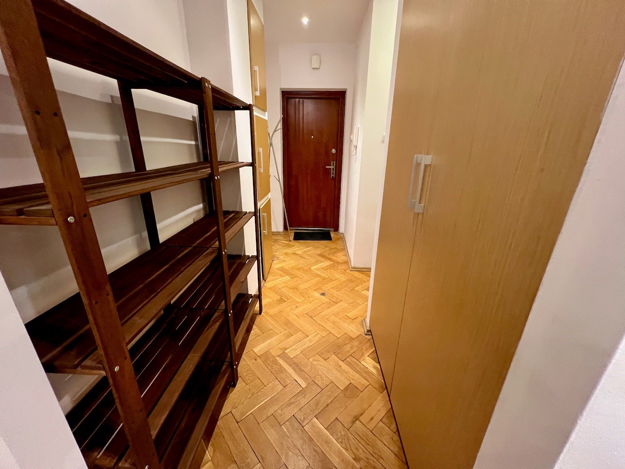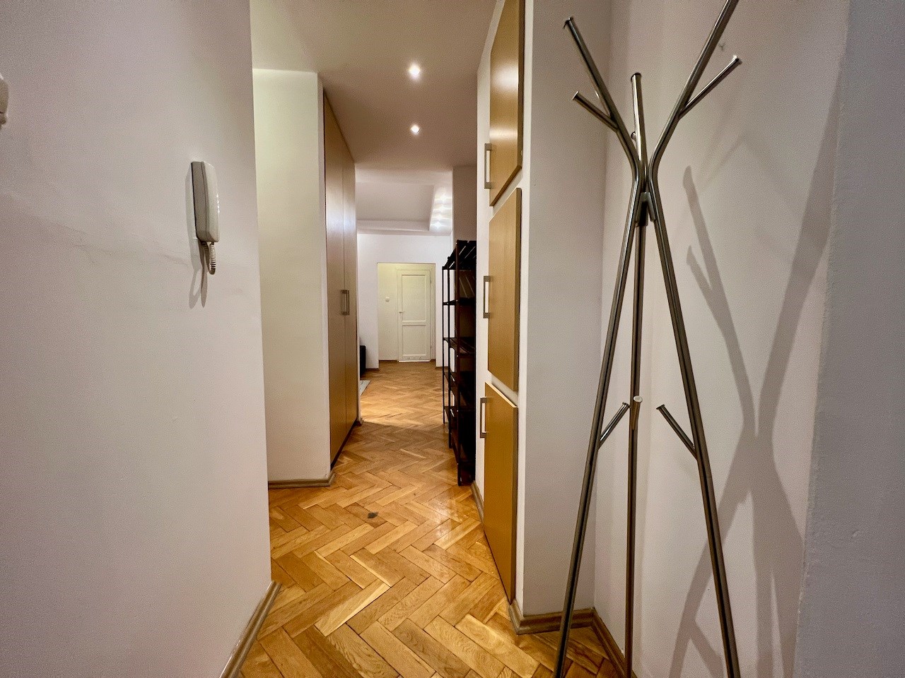 Lokal przestronny i całkowicie wyposażony. Okna z wystawą na wschód i zachód. Jasny i salon z kanapą, telewizorem LCD, komodą, niskim stolikiem i stołem z krzesłami oraz wyjściem na balkon. W kuchni meble w zabudowie, płyta elektryczna, piekarnik, lodówko-zamrażarka, zmywarka i blat z hokerami. W większej sypialni łóżko 2-osobowe i duża szafa, w mniejszej sypialni rozkładana kanapa i szafa. Łazienka z wanną z parawanem i funkcją prysznica i umywalką. Osobna toaleta. Przestronny hol z szafami.