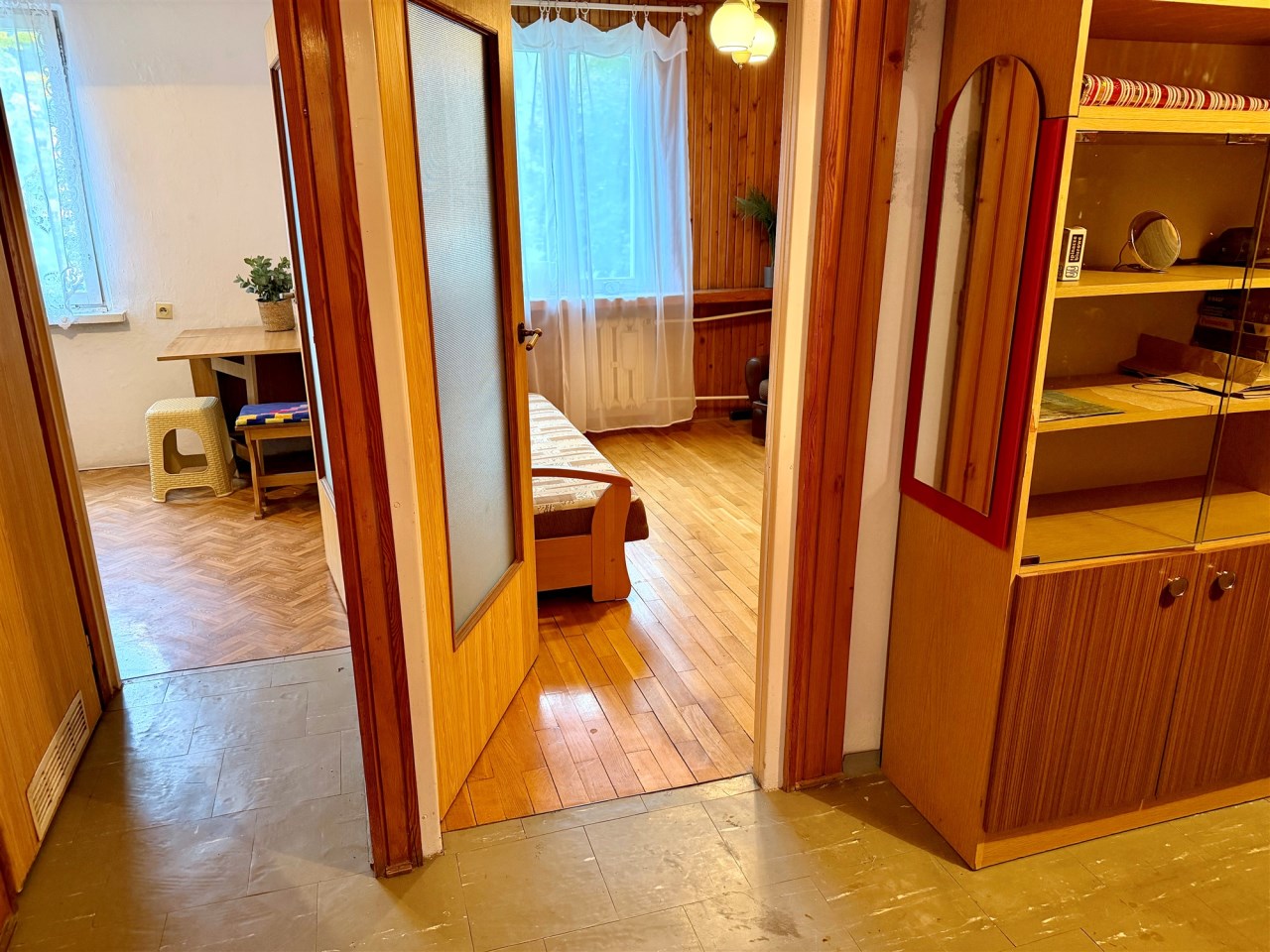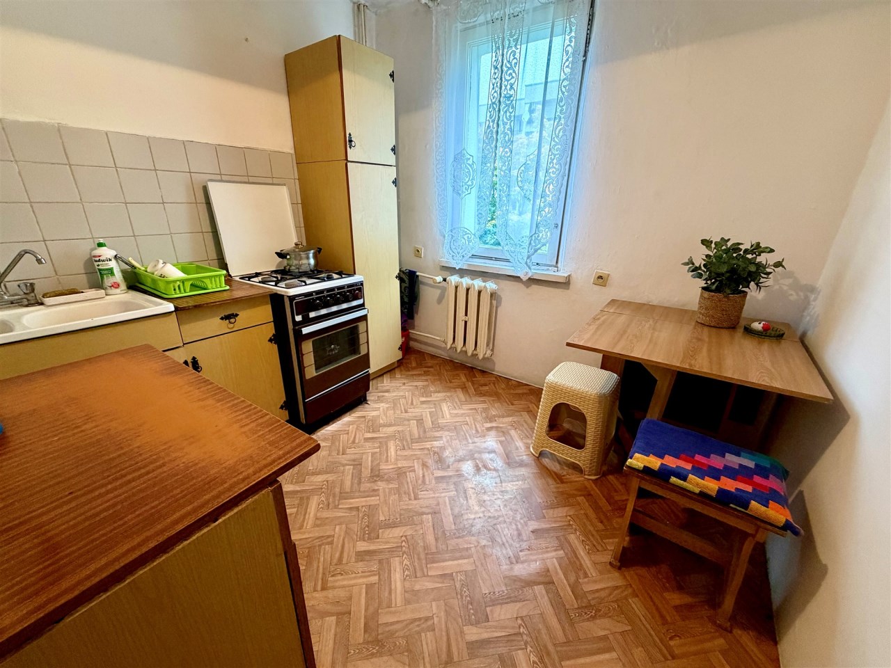 Mieszkanie do remontu. Mamy tutaj dwa samodzielne ustawne pokoje, kuchnię, łazienkę, osobną toaletę i przedpokój. W dużym pokoju okno balkonowe i wyjście na balkon z wystawą na południe. W małym pokoju duże okno z wystawą na północ. Kuchnia osobno. Łazienka i toaleta osobno. W przedpokoju miejsce na szafę. Okno plastikowe tylko w dużym pokoju. Drzwi wewnętrzne oryginalne.