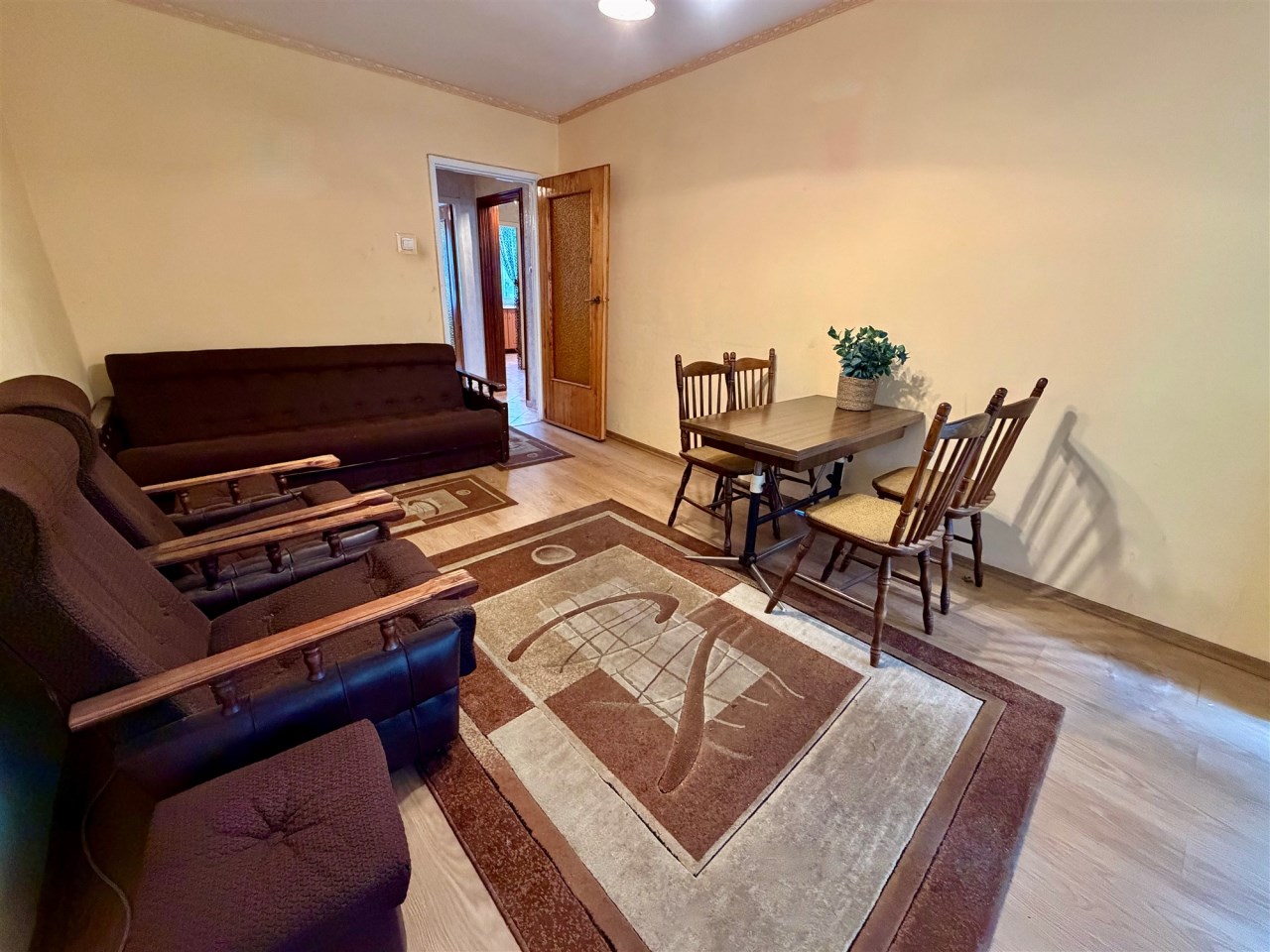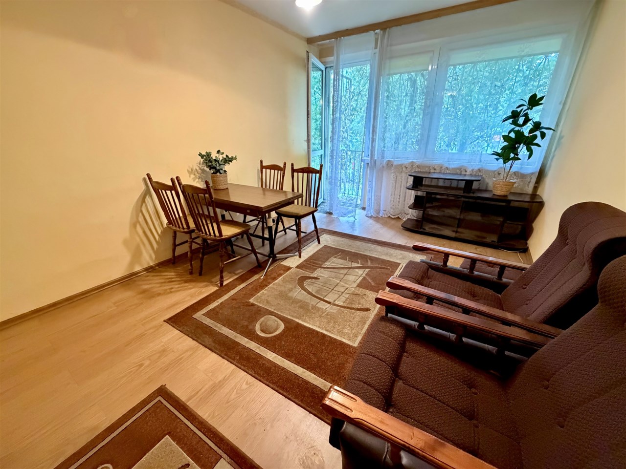 Lokal jest wygodny, ale wymaga remontu. Wszystkie pomieszczenia są rozkładowe. Jest tutaj ustawny pokój dzienny ok. 18 m2 z wyjściem na balkon z wystawą na południe. Kolejny pokój ok. 16 m2 również z wystawą na południe. Najmniejszy pokój ok. 10 m2 i kuchnia mają wystawę na północ. Łazienka i toaleta osobno. W przedpokoju miejsce na szafę. Okna PCV. Na podłogach płytki PCV i kafle.