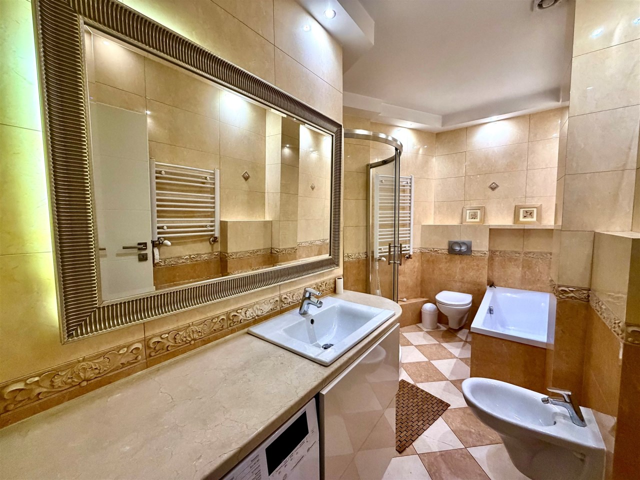 | Wyposażenie łazienki | bidet, kabina prysznicowa, lustro, pralka, umywalka, wanna, WC |