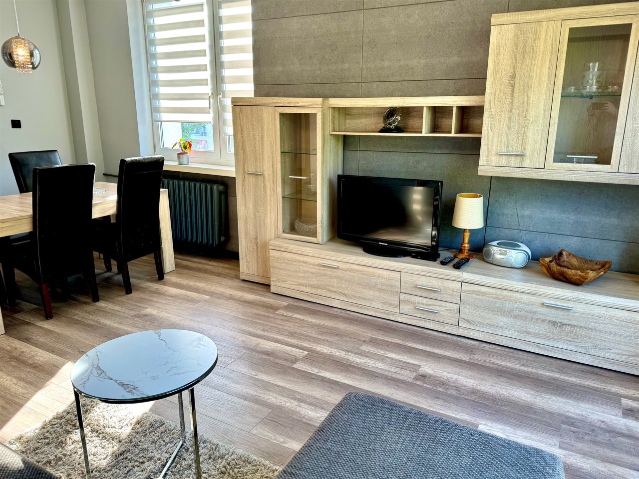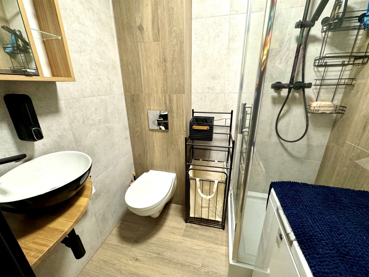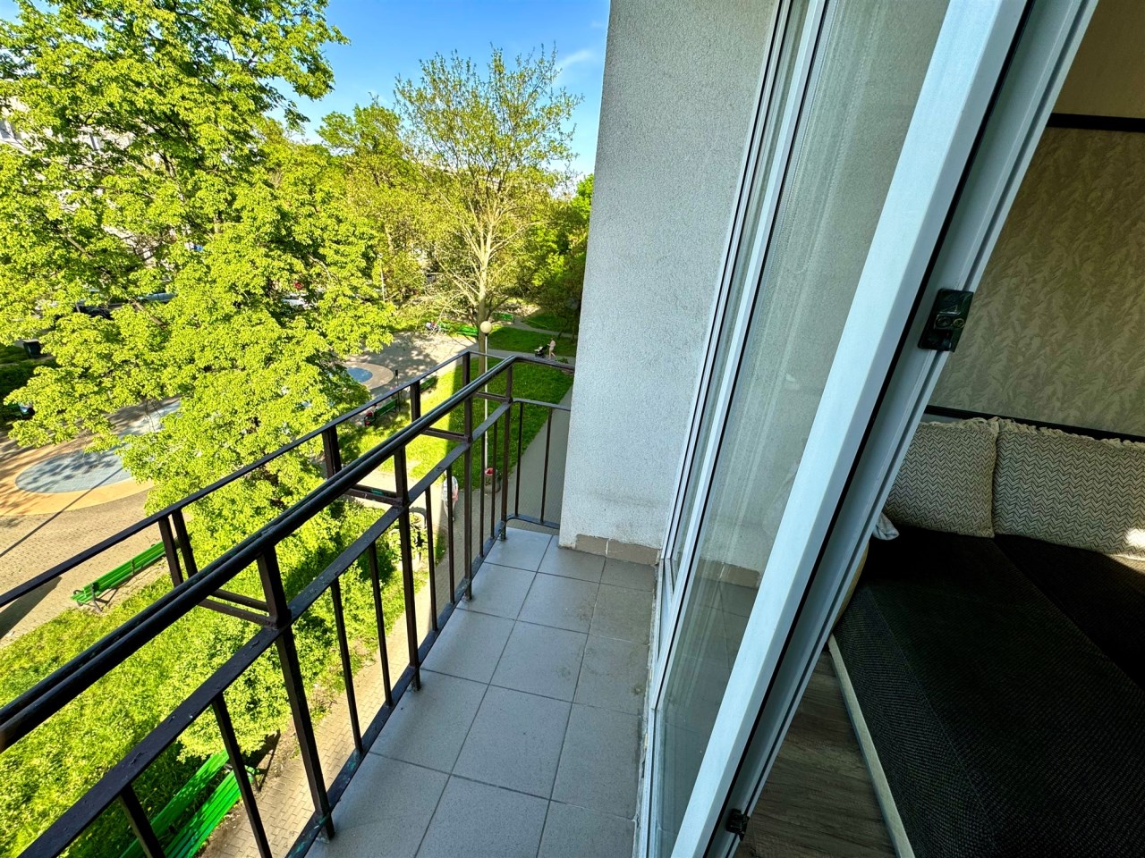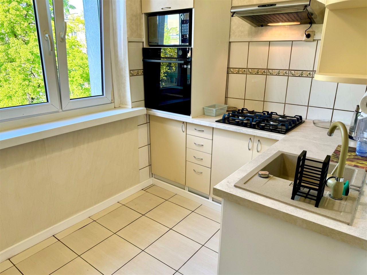 Przestronny pokój, osobna kuchnia, nowoczesna łazienka i hol. Spokojna, cicha i bezpieczna okolica. W pokoju rozkładana kanapa, niski stolik, stół, 4 krzesła, komoda, szafka RTV, telewizor, wyjście na niewielki balkon. Kuchnia - jasna glazura i terakota, szafki w zabudowie, lodówko-zamrażarka, płyta gazowa, piekarnik elektryczny, mikrofala, zmywarka, wyciąg, podstawowe wyposażenie. Łazienka niewielka w nowoczesnej aranżacji, kabina prysznicowa, umywalka, pralka, muszka toaletowa. Przedpokój z dużą szafą pod wymiar.