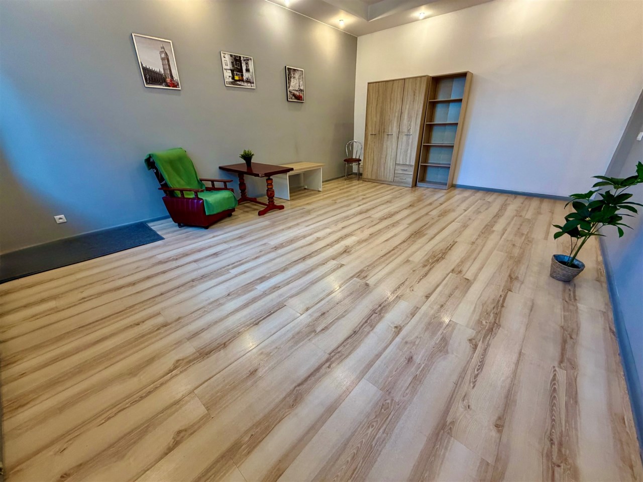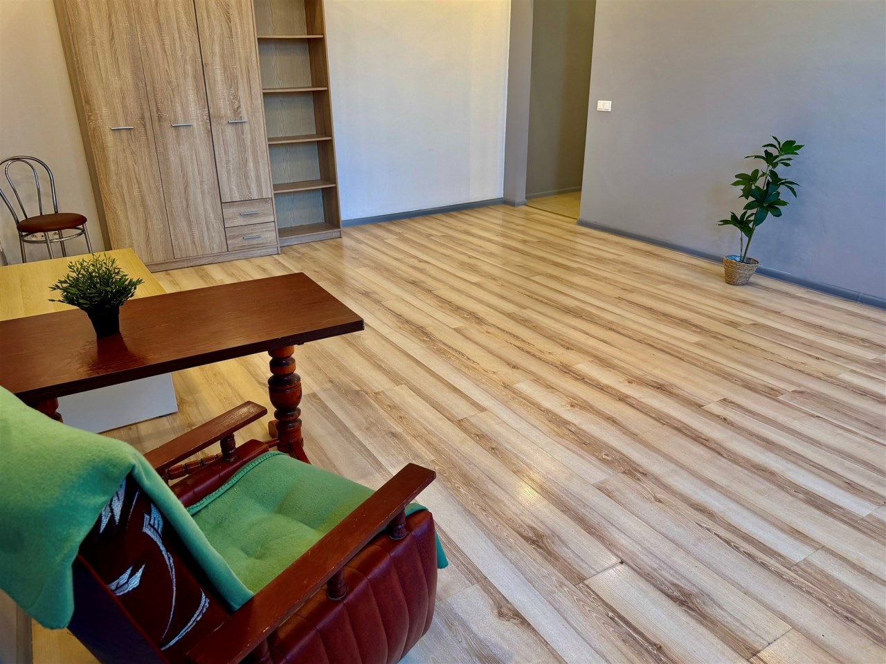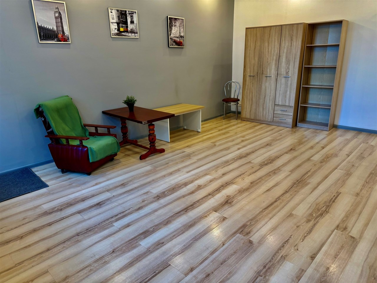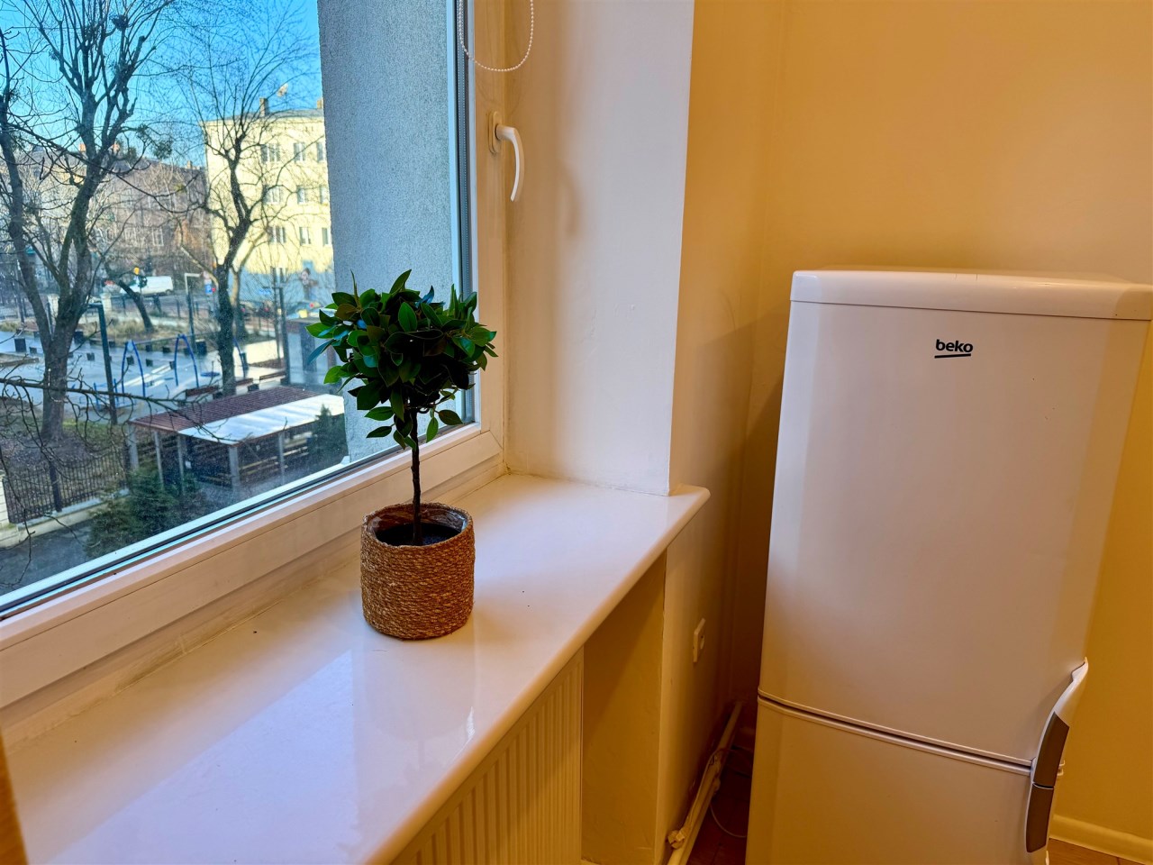 Lokal po remoncie. Przestronny, słoneczny pokój, osobna kuchnia, łazienka i przedpokój. Mieszkanie środkowe. Wystawa okien na zachód z zielenią za oknem. Umeblowanie pokoju to dwa fotele, ława, szafa, regał. W kuchni meble w zabudowie, lodówko-zamrażarka, pralka. Łazienka w z kabiną prysznicową, umywalka na szafce i duże lustro. Przedpokój z szafkami. Klatka schodowa zamykana domofonem, możliwość podłączenia Internetu i telewizji kablowej. Wszystkie media z sieci miejskiej.