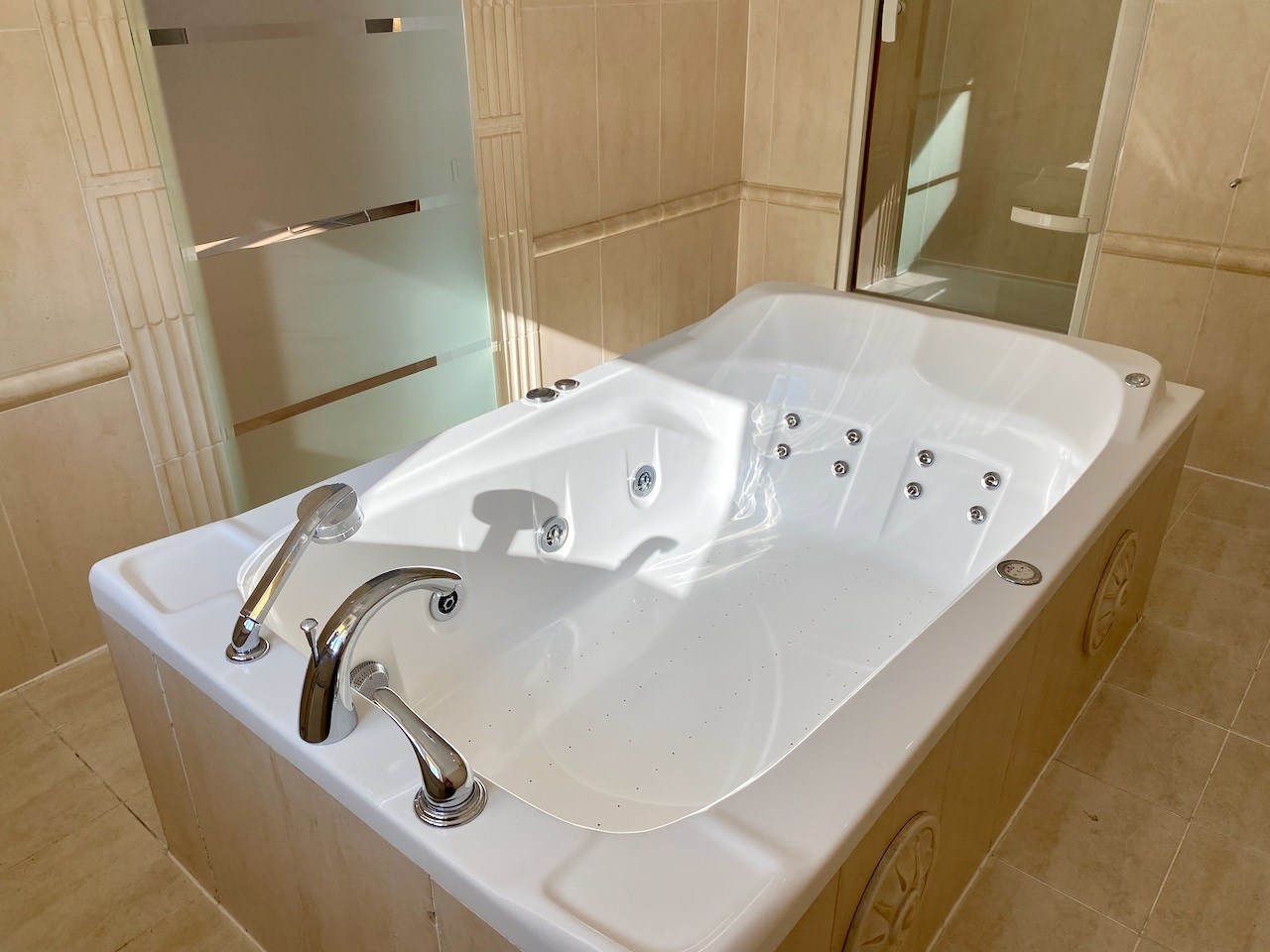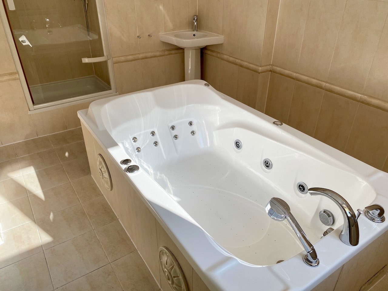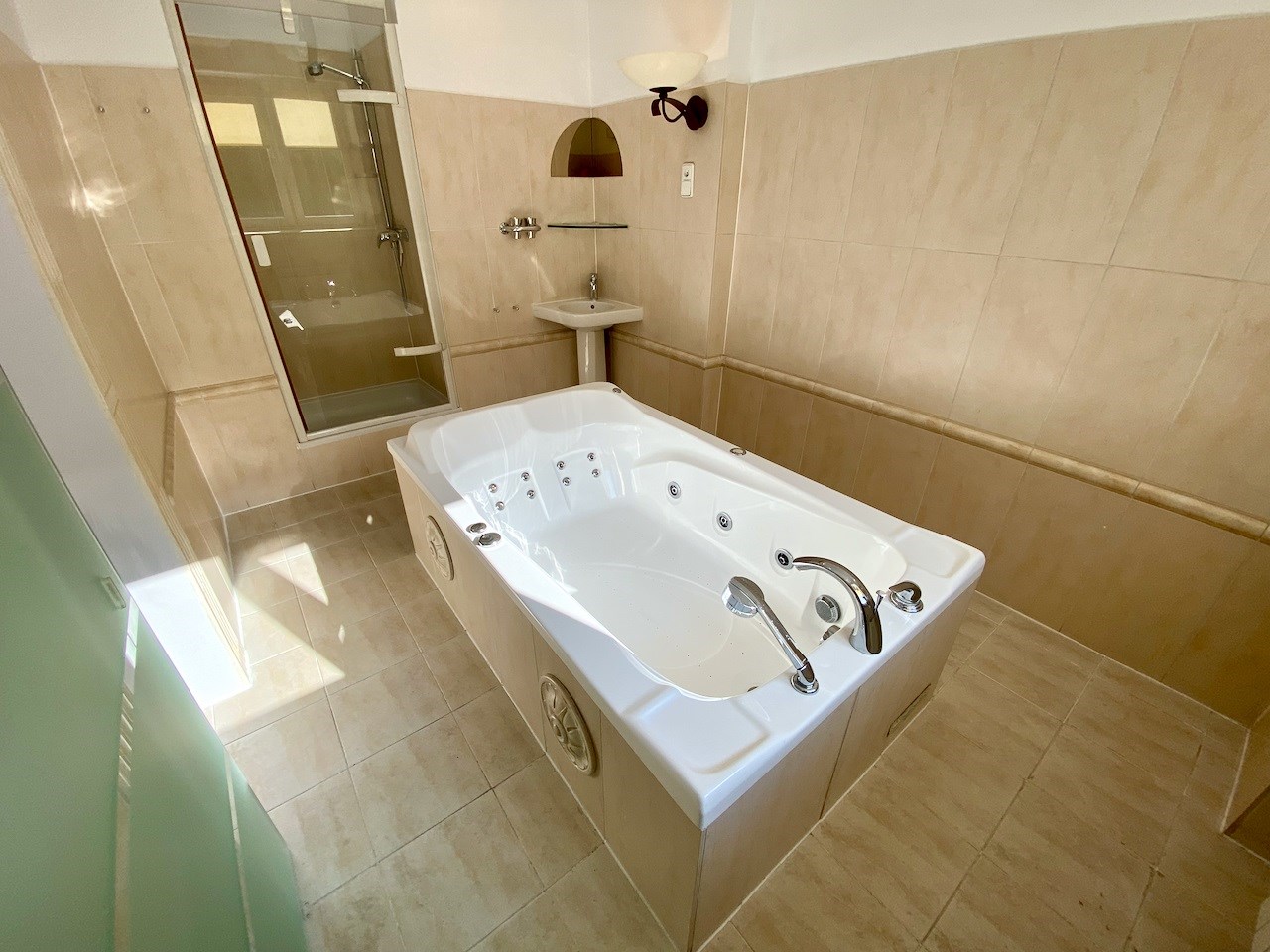 | Wyposażenie łazienki | wanna z hydromasażem, umywalka, prysznic, lustro |