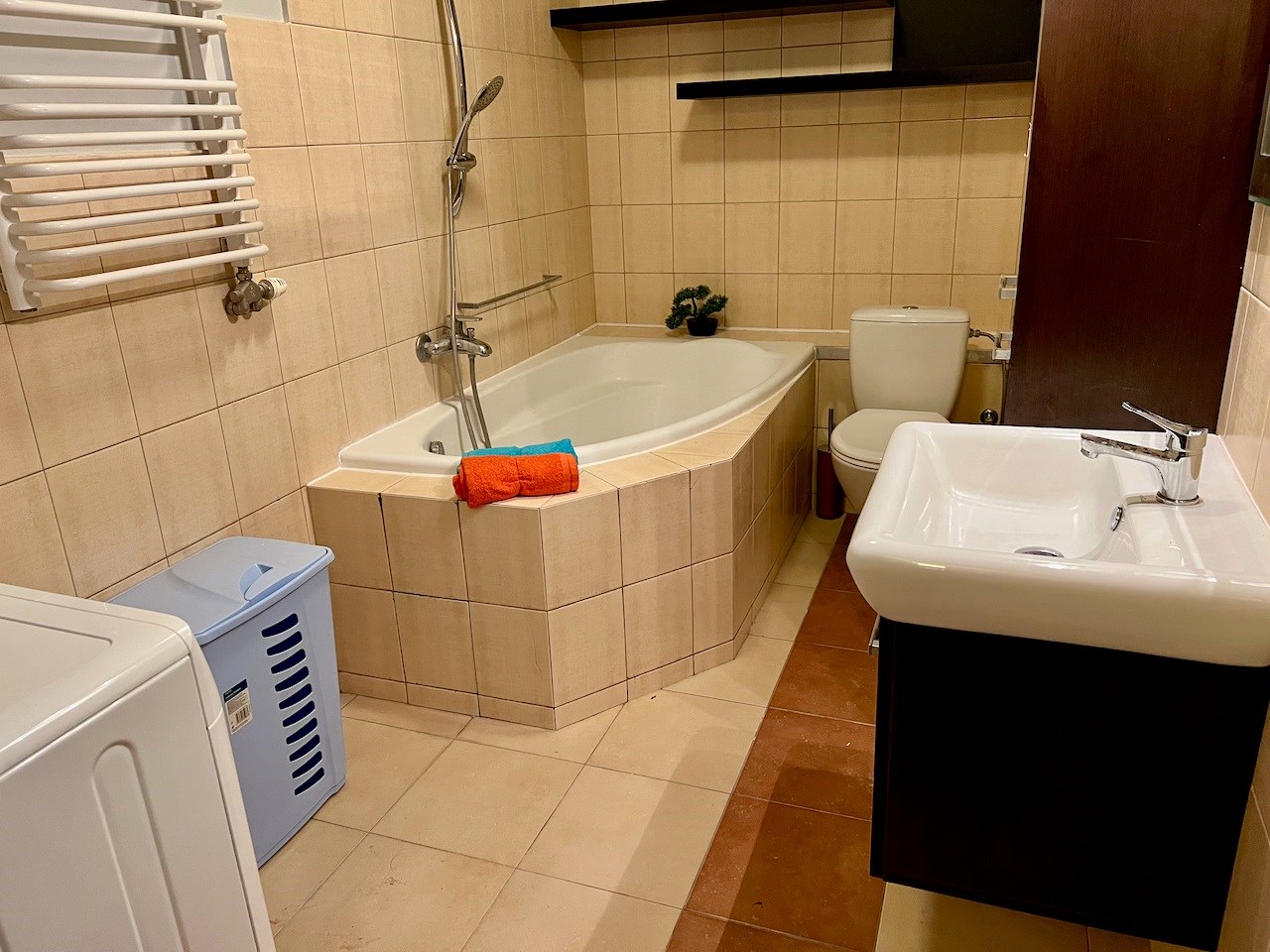 | Wyposażenie łazienki | lustro, pralka, umywalka, wanna, WC |