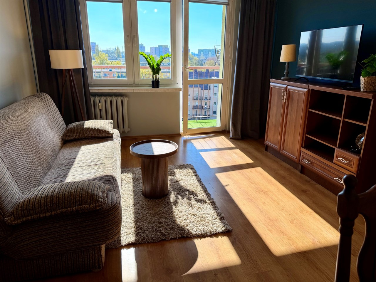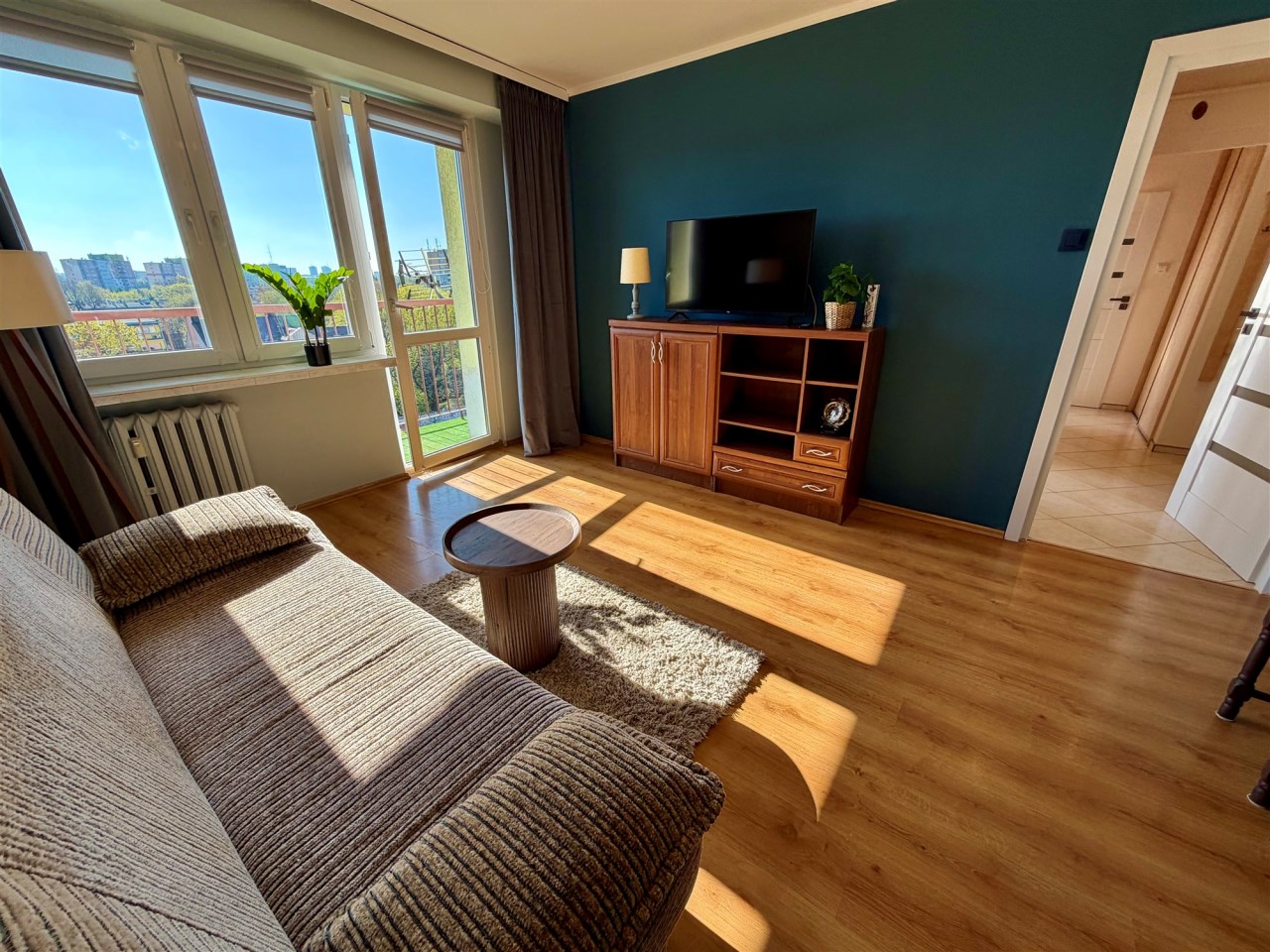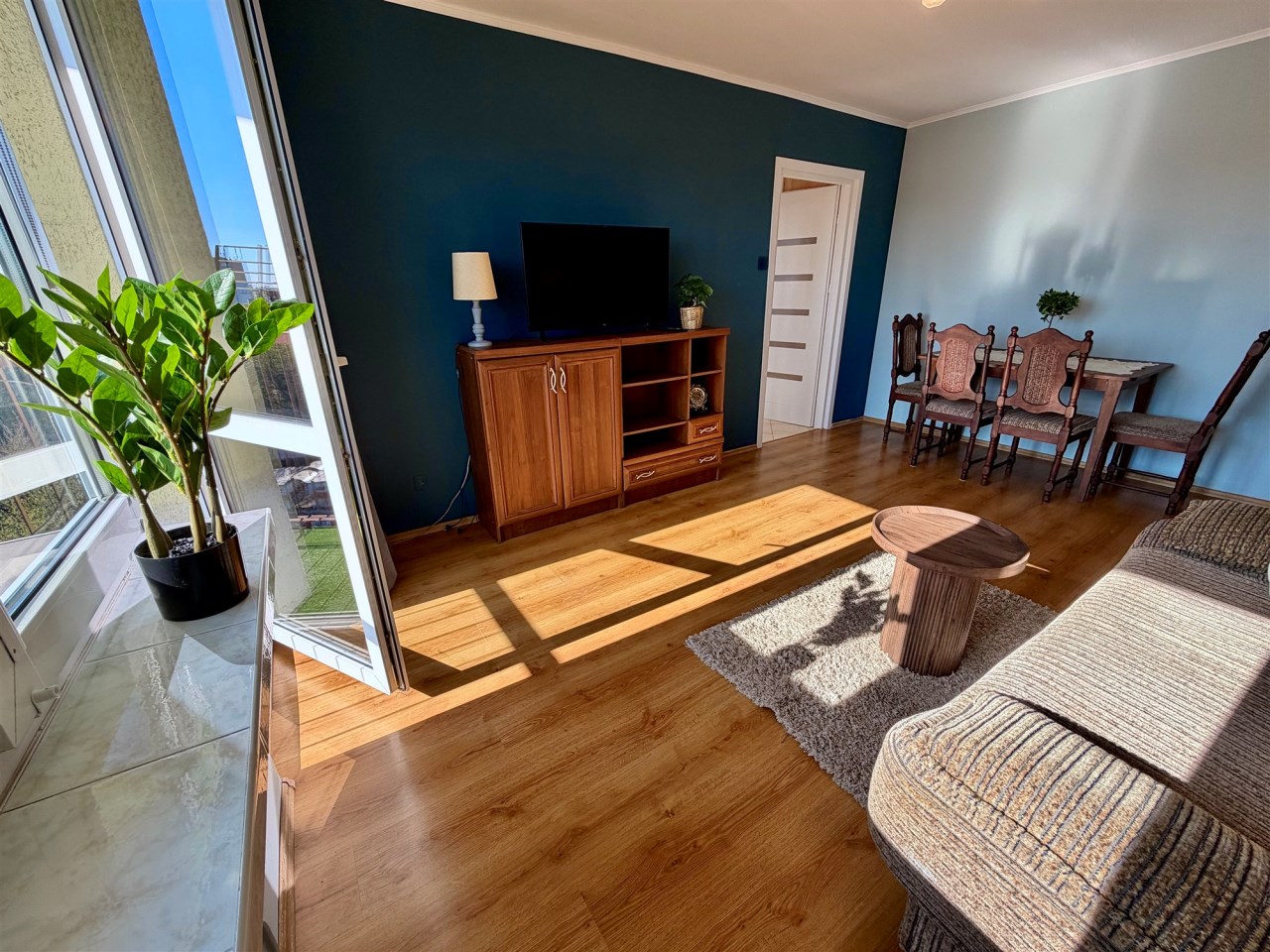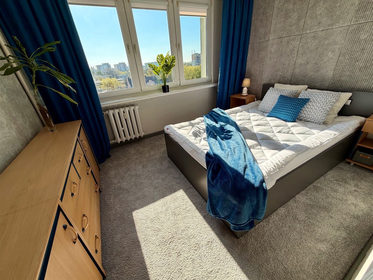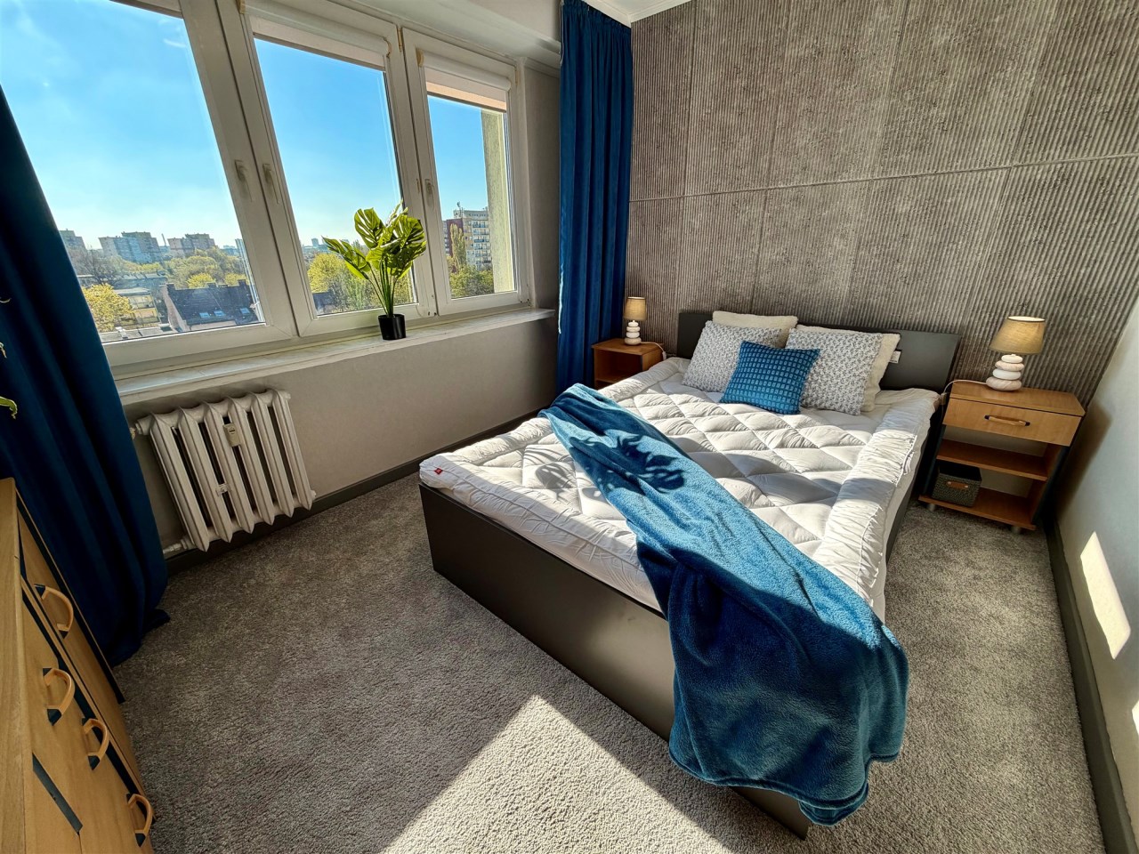 Dwa osobne pokoje, osobna kuchnia, łazienka i przedpokój. Spokojna, cicha i bezpieczna okolica. W większym pokoju rozkładana kanapa, niski stolik, stół, 4 krzesła, komoda, telewizor, witryna, wyjście na niewielki balkon. Mniejszy pokój to sypialnia z 2-osobowym łóżkiem, szafkami nocnymi i komodą. Kuchnia - jasna glazura i terakota, szafki w zabudowie, lodówko-zamrażarka, płyta gazowa, piekarnik elektryczny, zmywarka, wyciąg, podstawowe wyposażenie. W łaazience wanna z parawanem i funkcją prysznica, umywalka, pralka, muszka toaletowa. Przedpokój z dużą szafą pod wymiar.