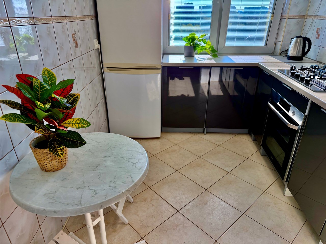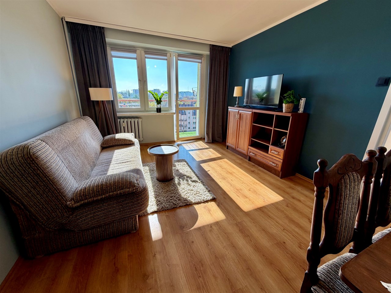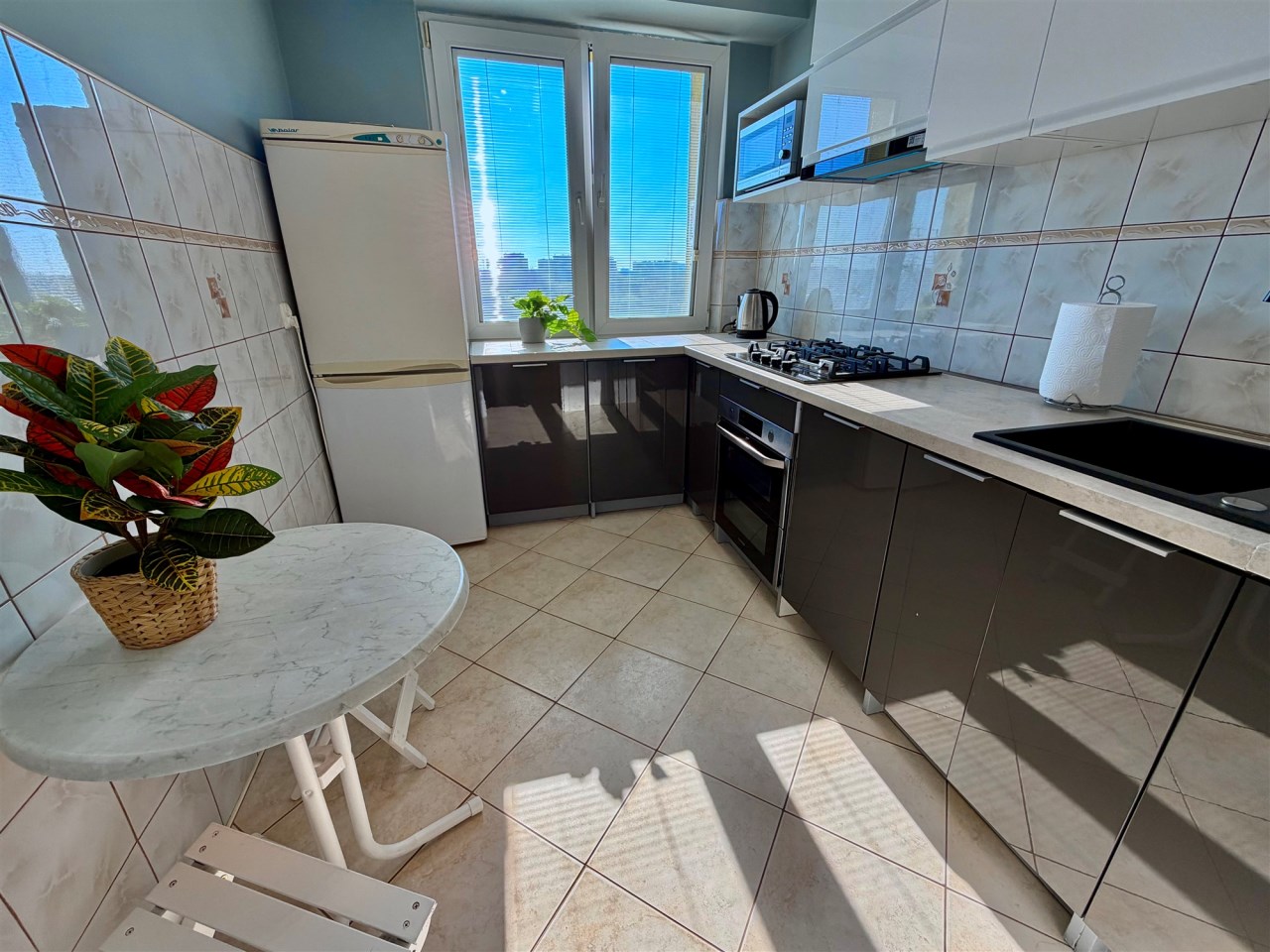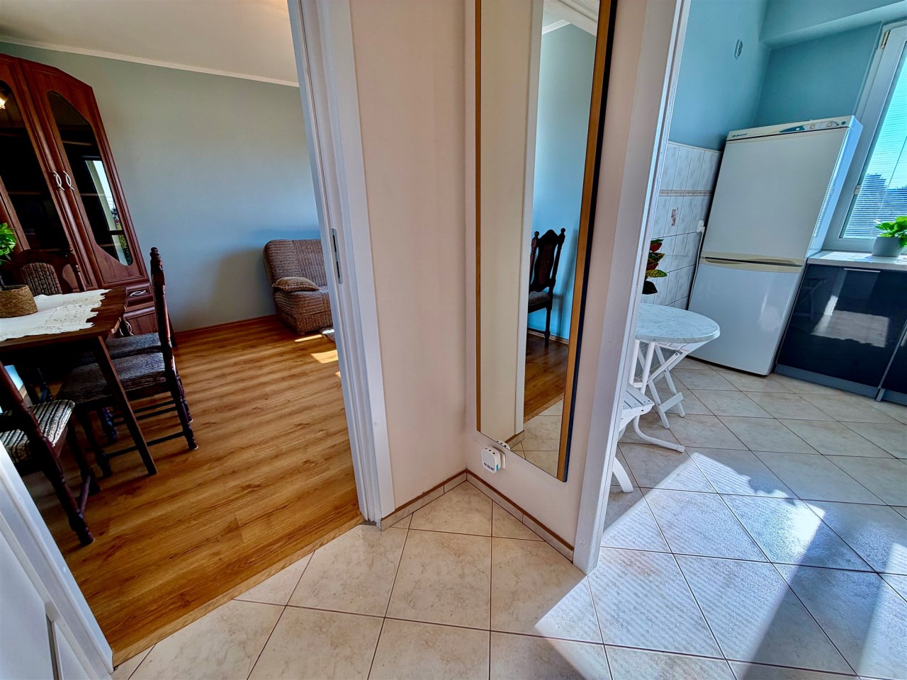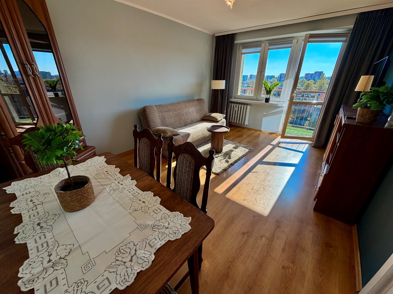 Dwa osobne pokoje, osobna kuchnia, łazienka i przedpokój. Spokojna, cicha i bezpieczna okolica. W większym pokoju rozkładana kanapa, niski stolik, stół, 4 krzesła, komoda, telewizor, witryna, wyjście na niewielki balkon. Mniejszy pokój to sypialnia z 2-osobowym łóżkiem, szafkami nocnymi i komodą. Kuchnia - jasna glazura i terakota, szafki w zabudowie, lodówko-zamrażarka, płyta gazowa, piekarnik elektryczny, zmywarka, wyciąg, podstawowe wyposażenie. W łaazience wanna z parawanem i funkcją prysznica, umywalka, pralka, muszka toaletowa. Przedpokój z dużą szafą pod wymiar.