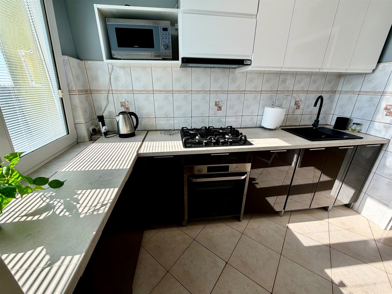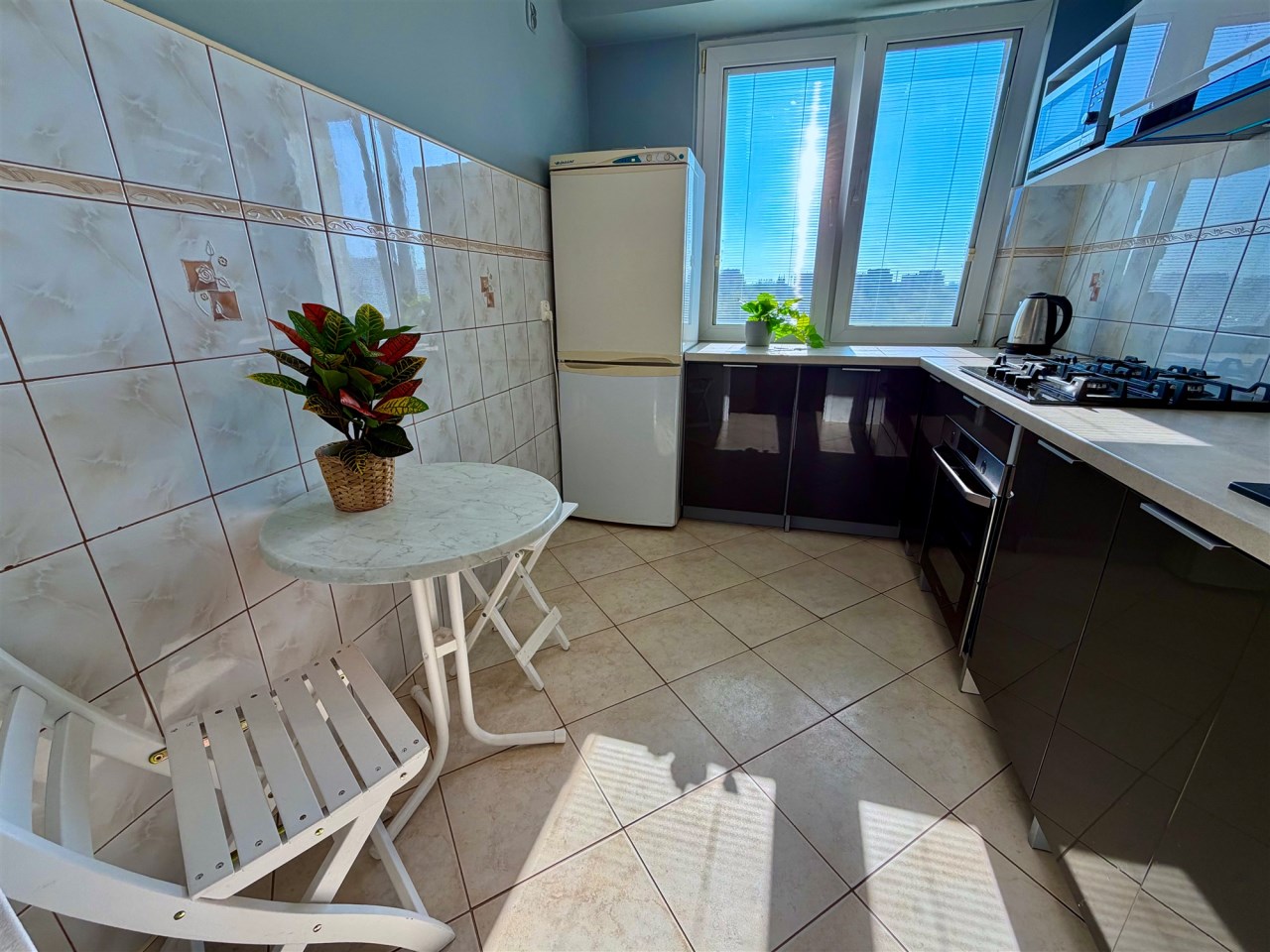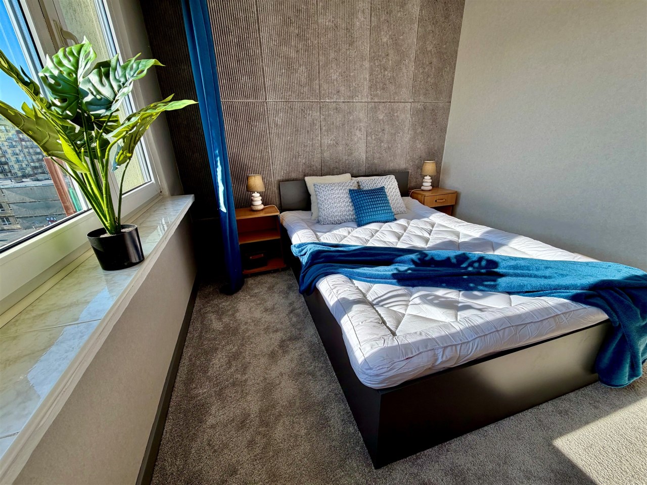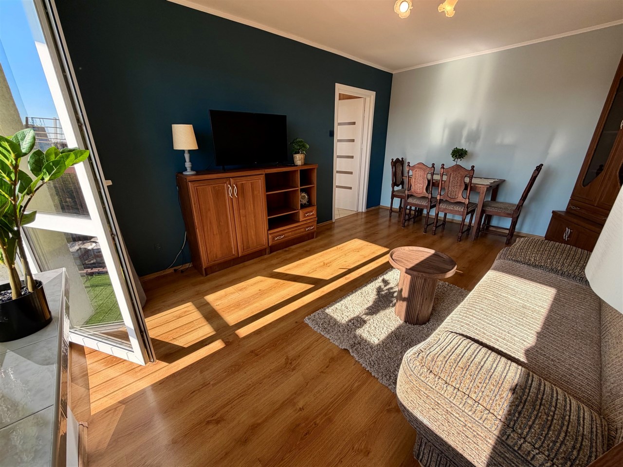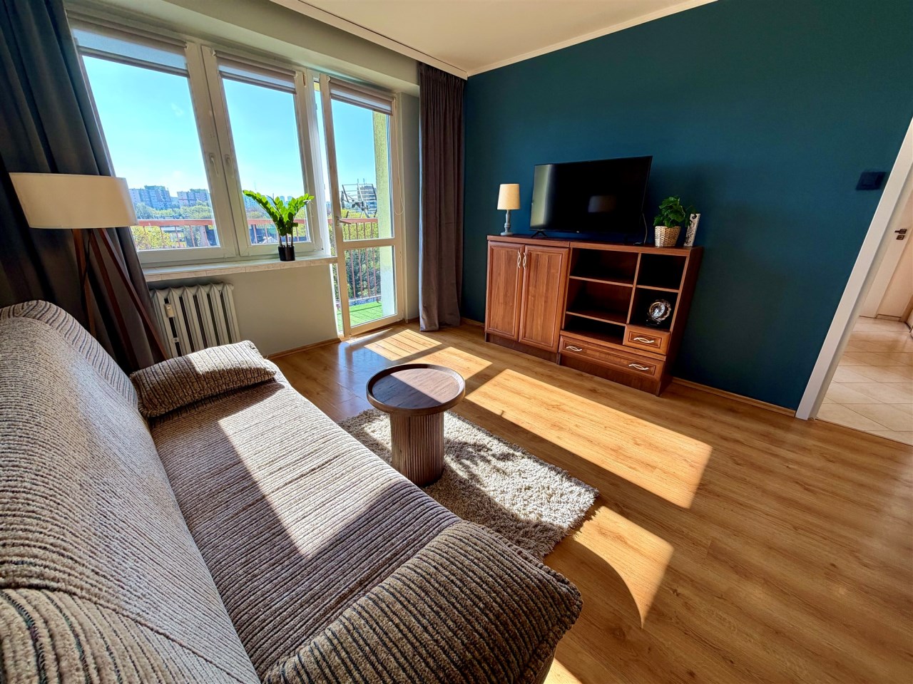 Dwa osobne pokoje, osobna kuchnia, łazienka i przedpokój. Spokojna, cicha i bezpieczna okolica. W większym pokoju rozkładana kanapa, niski stolik, stół, 4 krzesła, komoda, telewizor, witryna, wyjście na niewielki balkon. Mniejszy pokój to sypialnia z 2-osobowym łóżkiem, szafkami nocnymi i komodą. Kuchnia - jasna glazura i terakota, szafki w zabudowie, lodówko-zamrażarka, płyta gazowa, piekarnik elektryczny, zmywarka, wyciąg, podstawowe wyposażenie. W łaazience wanna z parawanem i funkcją prysznica, umywalka, pralka, muszka toaletowa. Przedpokój z dużą szafą pod wymiar.