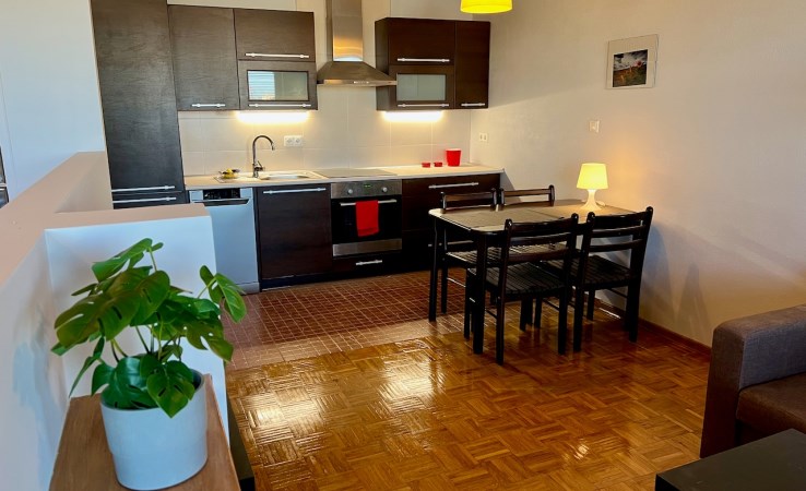 Mieszkanie składa się z pokoju dziennego z aneksem kuchennym, sypialni, łazienki i niewielkiego przedpokoju. Lokal jest umeblowany i wyposażony. Ogrzewanie z sieci miejskiej, ciepła woda z bojlera gazowego. Możliwość podłączenia Internetu i telewizji.