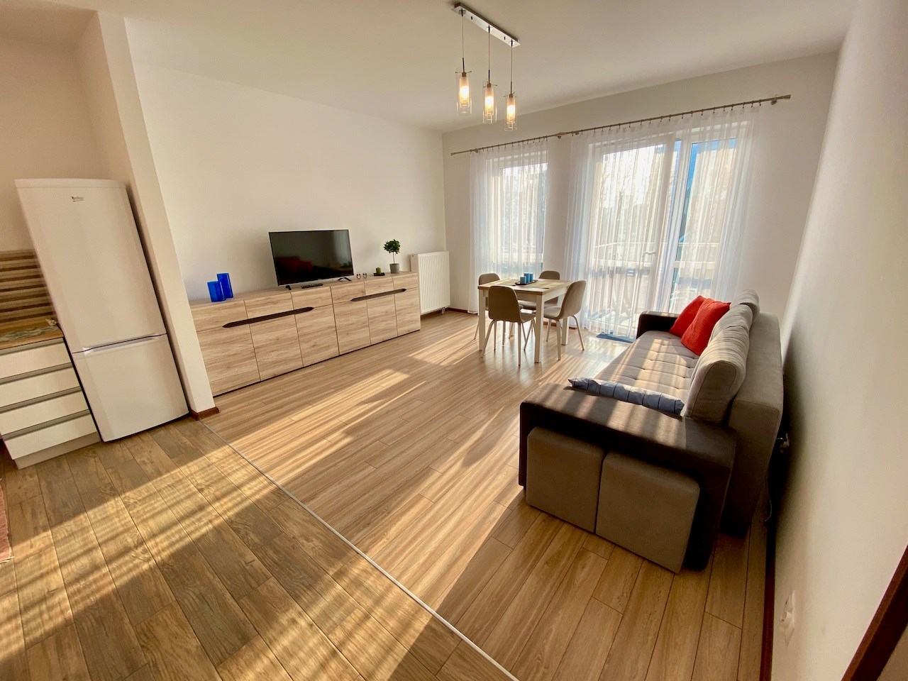Opłata dla właściciel to 2000 zł plus opłata za garaż 250 zł plus koszty eksploatacji około 1000 zł (w tym opłata dla wspólnoty 806,68 zł przy dwóch osobach i zużyciu 9,29 m3 wody zimnej i 3,52 m3 wody ciepłej oraz rachunki za prąd około 200 zł - dwie osoby pracujące zdalnie w mieszkaniu) plus koszt Internetu i TV, jeżeli są potrzebne. Kaucja 3250 zł.