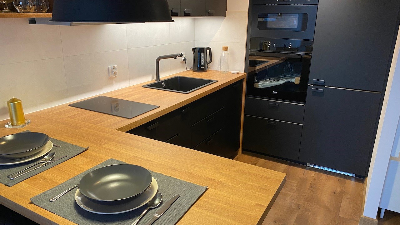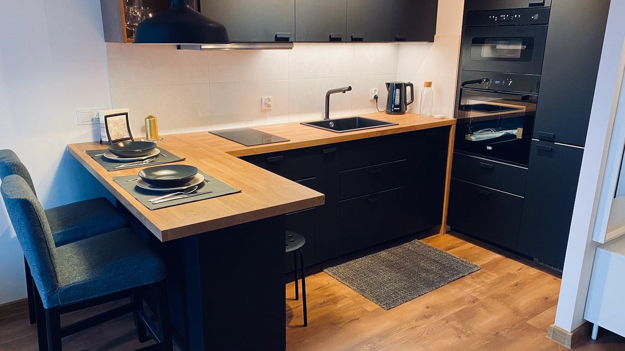 | Wyposażenie kuchni | zmywarka, zlewozmywak z baterią, płyta indukcyjna, wyposażenie drobne, piekarnik elektryczny, okap kuchenny, meble kuchenne na wymiar, lodówko-zamrażarka,, mikrofalówka |