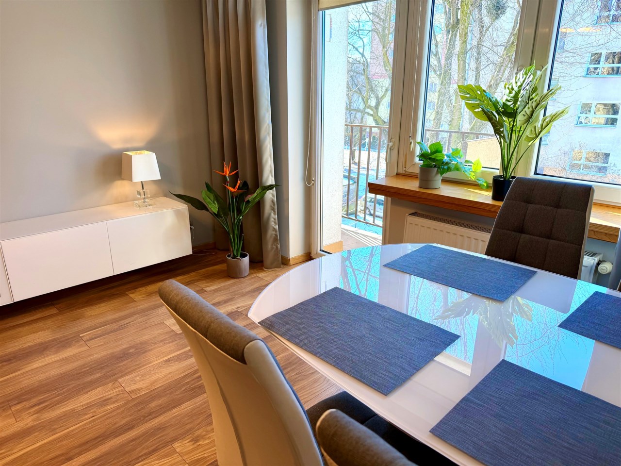 Czynsz najmu to 2200 zł plus opłata dla Wspólnoty około 900 zł przy dwóch osobach plus rachunki za prąd (około 150-200 zł). Zatem łączny miesięczny koszt najmu to około 3300 zł plus Internet i TV jeżeli są potrzebne. Kaucja 3500 zł. Umowa najmu okazjonalnego (z aktem notarialnym) na minimum rok.