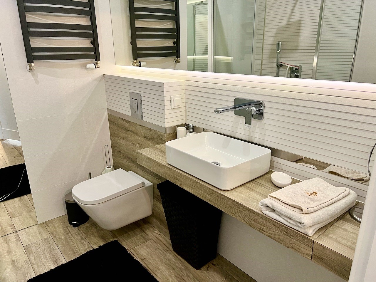 | Wyposażenie dodatkowe | lustro, pralka, szafka, zlew |