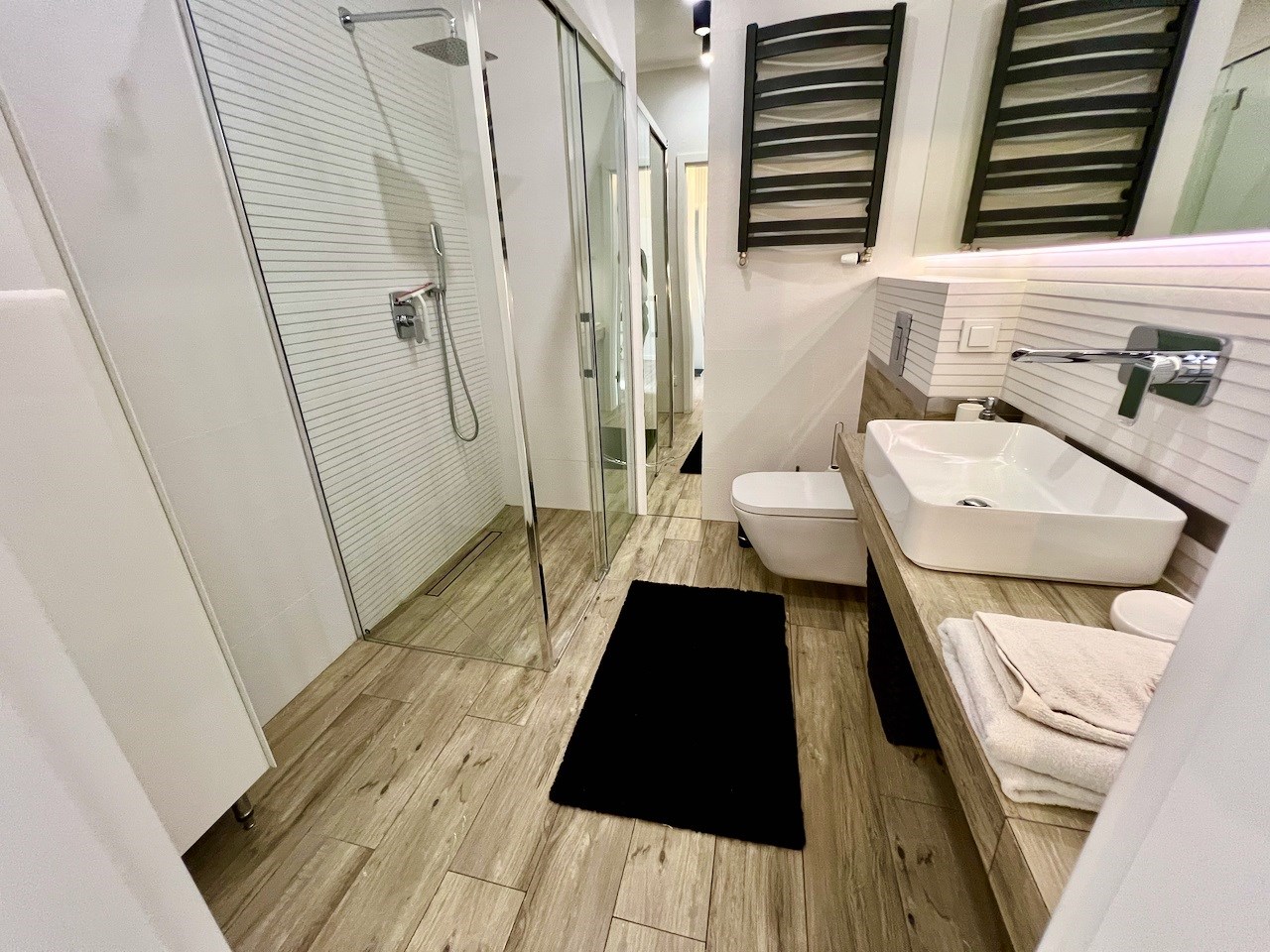 | Wyposażenie łazienki | kabina prysznicowa, lustro, pralka, umywalka, WC |