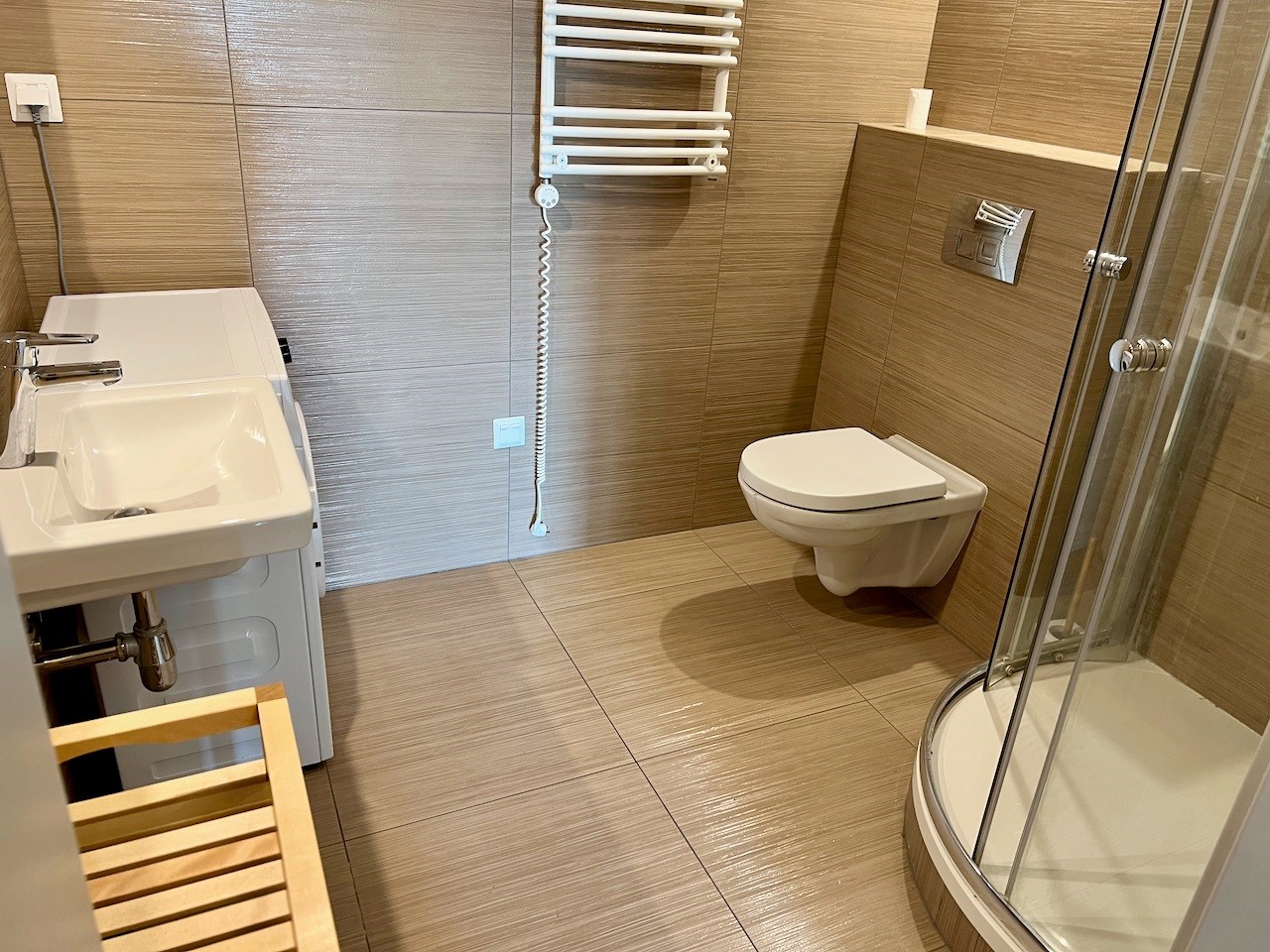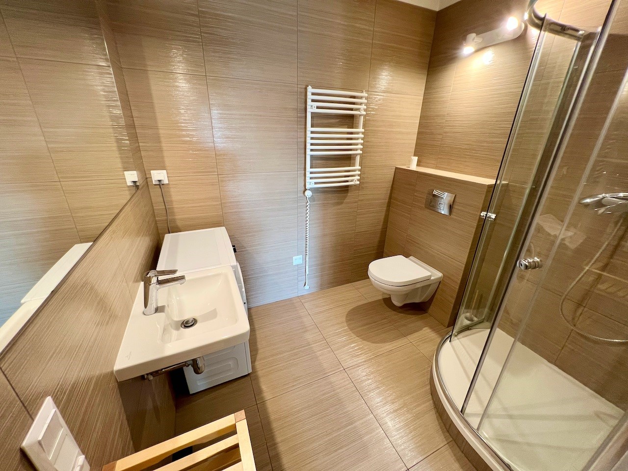 | Wyposażenie łazienki | kabina prysznicowa, lustro, pralka, umywalka, WC |