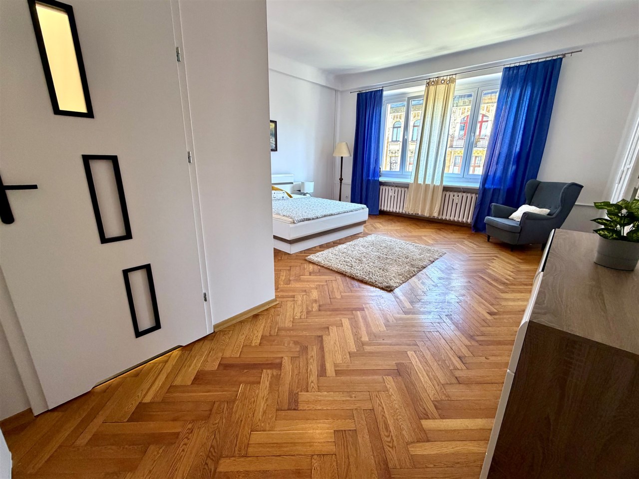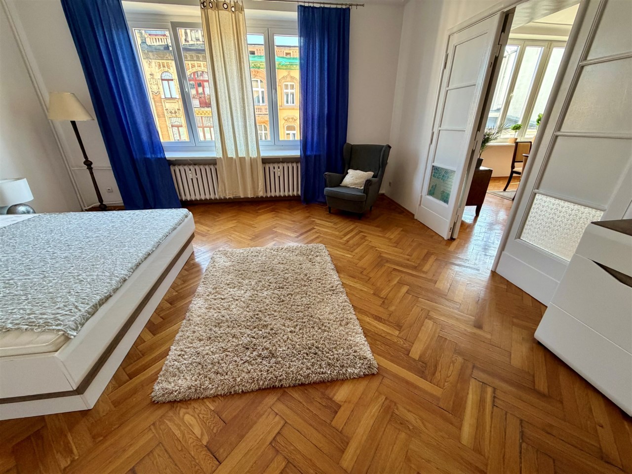 Przestronne mieszkanie w reprezentacyjnej przedwojennej kamienicy na Deptaku ulicy Piotrkowskiej w rejonie skrzyżowania z ulicą Zamenhofa-Nawrot. W budynku winda, ogrzewanie miejskie, brama na posesję zamykana pilotem.