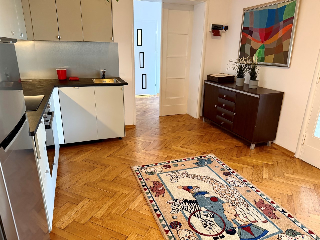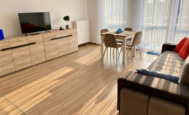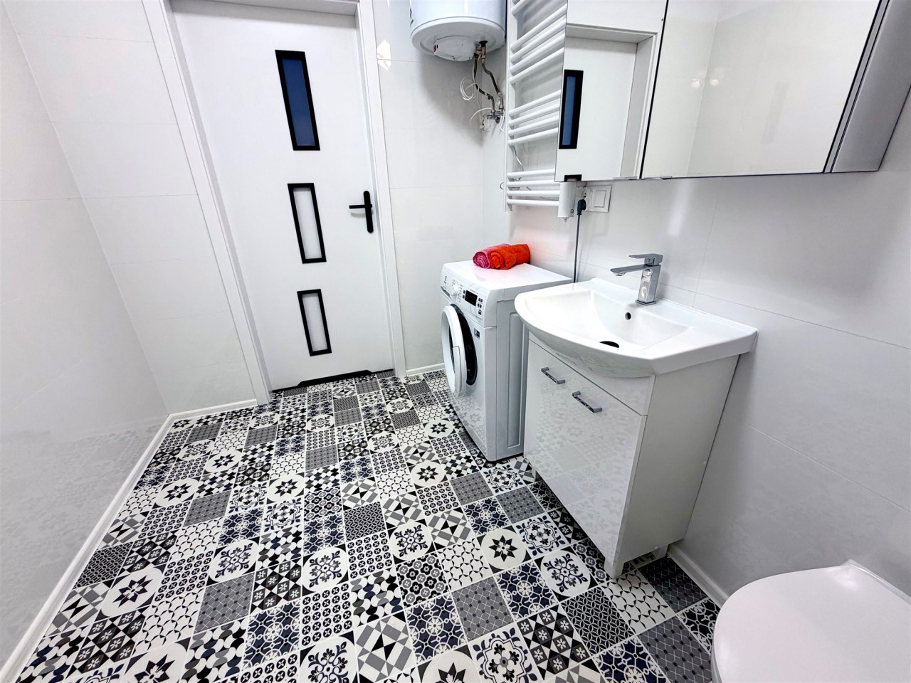 Mieszkanie właśnie zostało odmalowane i zrobiono remont łazienki oraz nowy aneks kuchenny w holu. W łazience jest kabina prysznicowa, pralka, umywalka na szafce i toaleta. W aneksie meble pod wymiar, lodówko-zamrażarka, zmywarka, płyta indukcyjna i piekarnik. Możliwość podłączenia Internetu i telewizji.